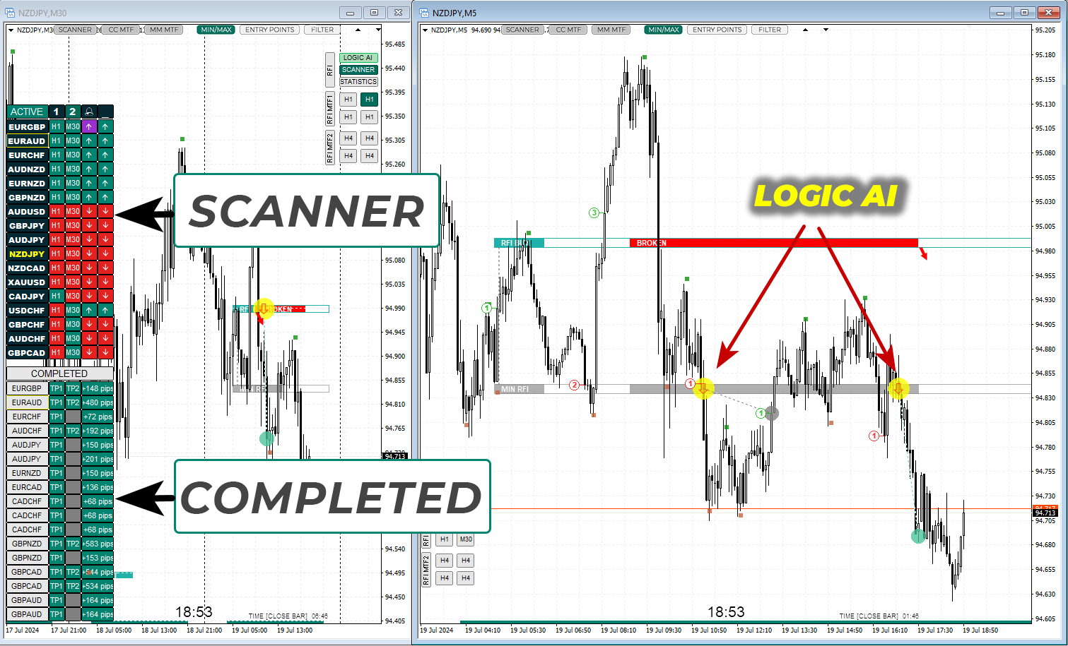 Displays entry points, trend direction, trend scanning, and other useful features.