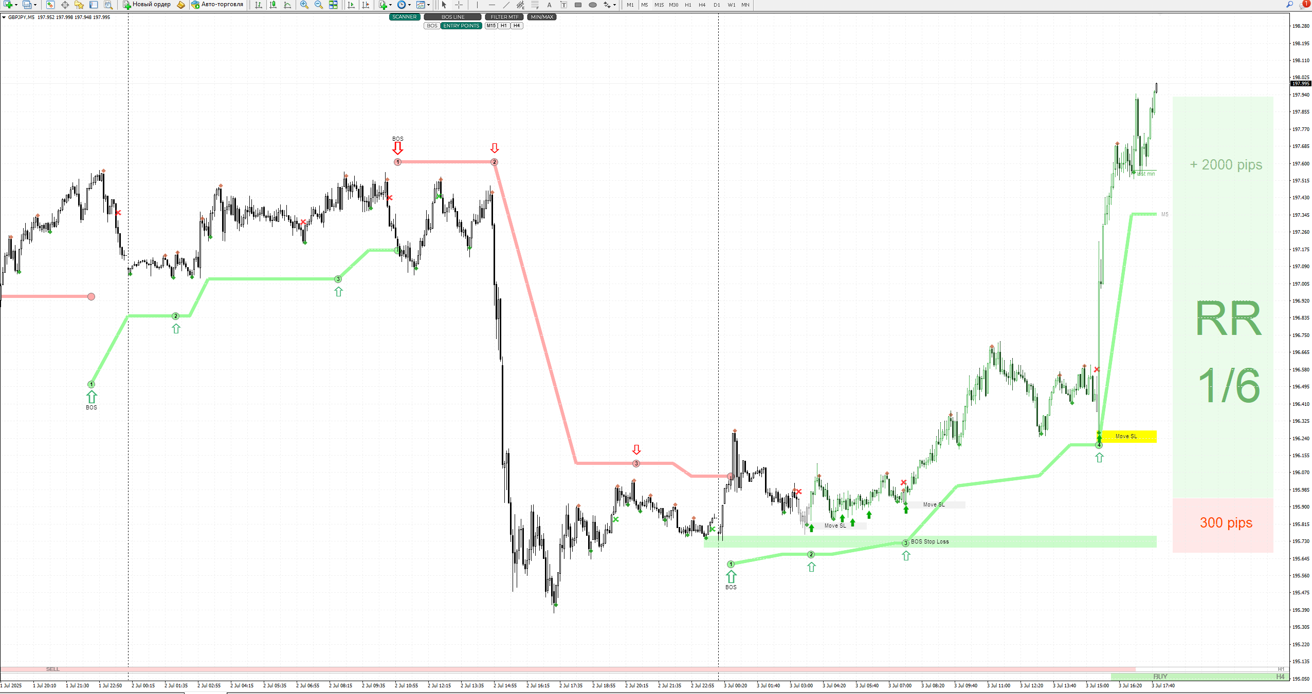Профессиональный индикатор нового поколения, который автоматически определяет ключевые уровни и зоны рыночной активности. Он сочетает мультитайм-анализ, разворотные конструкции BOS LINE и смены тенденций от TREND PRO